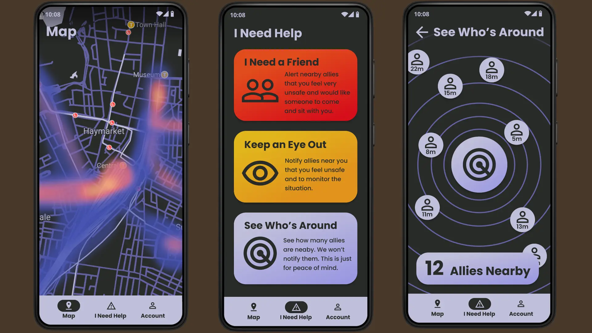 Herd was an app concept designed around women's safety on public transport. This was the fastest turnaround I've had for a UX design brief, which served as a fun challenge.